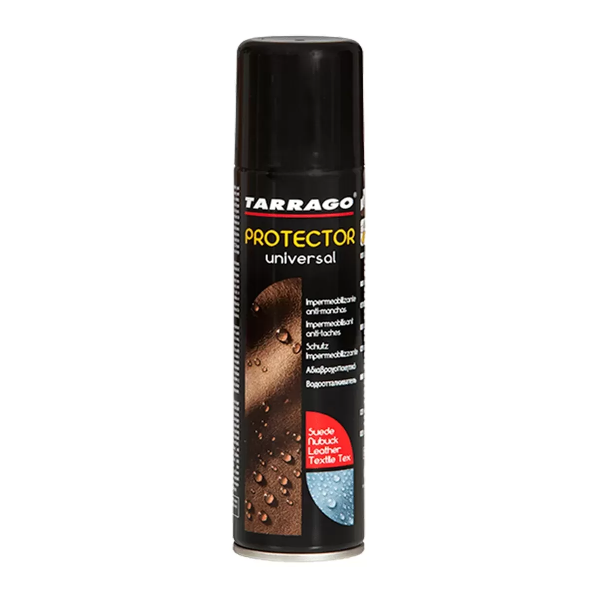 Tarrago Universal Protector to bezbarwny spray, który skutecznie chroni obuwie, odzież i akcesoria wykonane z różnych materiałów przed wilgocią, zabrudzeniami oraz plamami. Idealny do stosowania na zamszu, nubuku, tekstyliach, mikrofibrze oraz membranach typu GORE-TEX.
