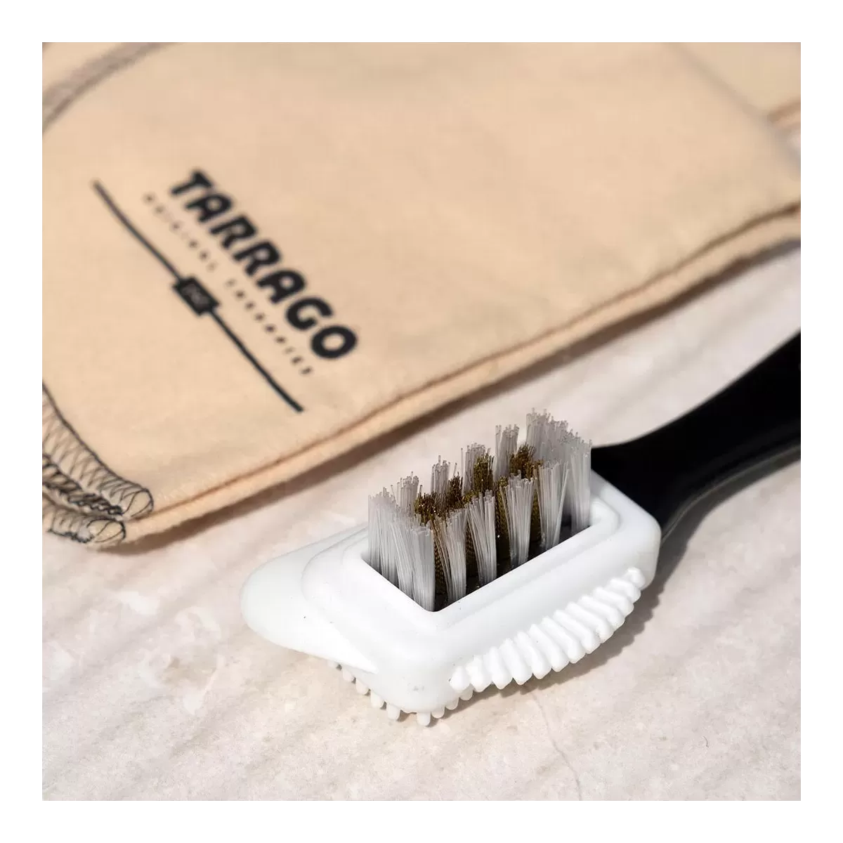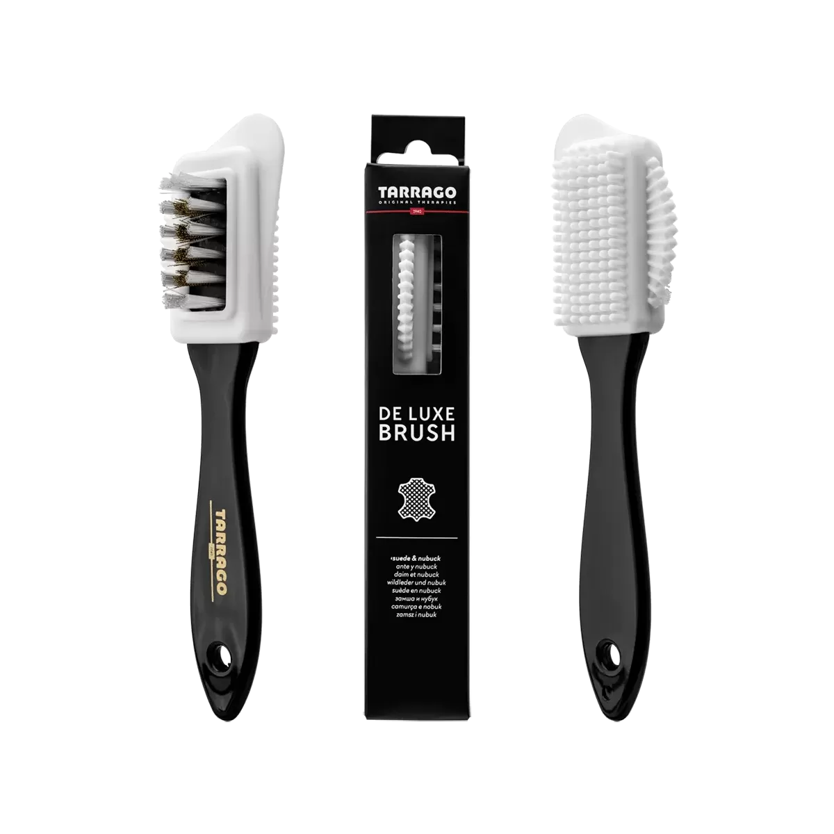 Szczotka Tarrago Brush de Luxe to niezastąpione narzędzie w codziennej pielęgnacji butów i akcesoriów wykonanych z zamszu, nubuku oraz weluru. Dzięki swojej przemyślanej konstrukcji i zastosowaniu dwóch typów włosia, umożliwia zarówno skuteczne oczyszczenie skóry, jak i przywrócenie jej naturalnej struktury.