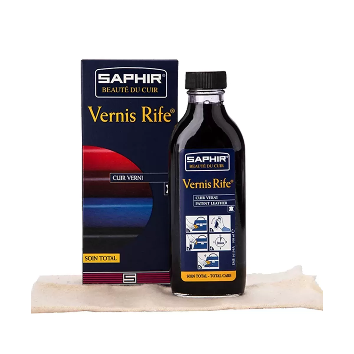 Lakierowana galanteria i obuwie wymaga wyjątkowej troski, by zachować swój wyjątkowy połysk i gładką powierzchnię. Saphir Vernis Rife to specjalistyczny płyn, który czyści, nabłyszcza i konserwuje lakierowaną skórę, zachowując jej lśniący wygląd bez spożywania konkrecji.