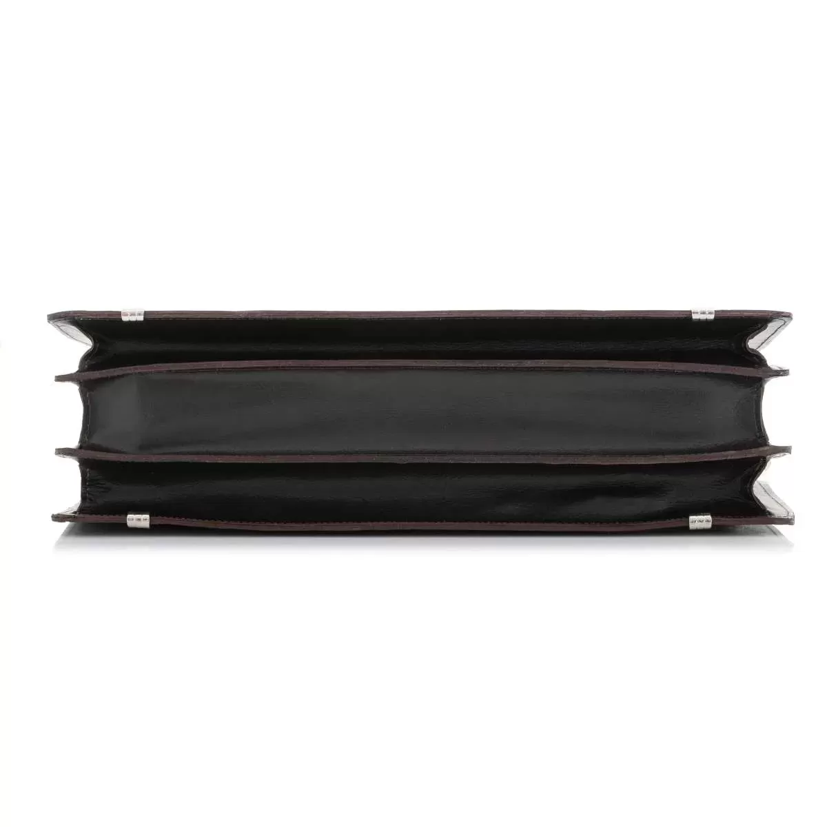 Ta elegancka teczka męska, dostępna w dwóch wariantach – z paskiem na ramię lub bez – to doskonały wybór dla osób ceniących ponadczasowy styl, funkcjonalność i trwałość. Wykonana została w Polsce ze skóry naturalnej bydlęcej o gładkiej, licowej powierzchni w głębokim, ciemnobrązowym odcieniu. Jej solidna konstrukcja sprawia, że sprawdzi się zarówno jako codzienna torba do pracy, jak i stylowe uzupełnienie biznesowego stroju.